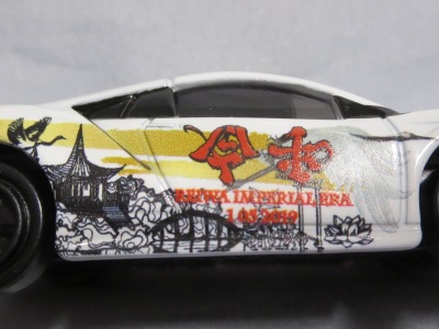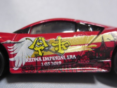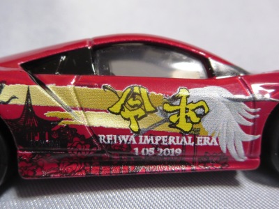 | 2017年2月15日ヤフオク初登場の海外2次加工モデル。 初登場時は1台5,240円で出品されていたが、2018年5月18日に2台セットで6,200円で香港から出品されたのを見つけて購入。 箱は通常箱にシールを貼って加工したもので、トミカ自体のデザインレベルも高い。 箱の裏面の刻印はホワイトが「K2116」、レッドが「K0116」となっており、それぞれ2016年11月21日製造、2016年11月1日製造であることが分かる。レッドの方が日付が新しいのは最初に入手した通常品も同じ。ベトナム製。 |