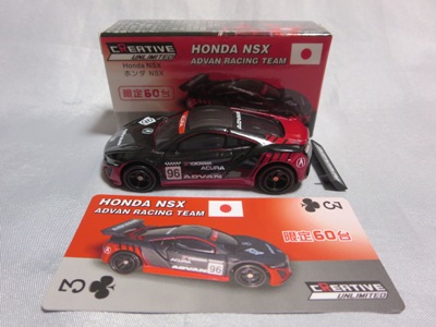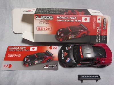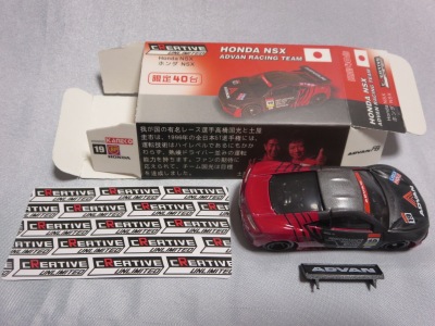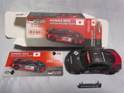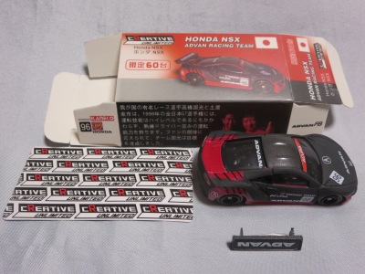 ▲2019年2月4日(神奈川)と6日(東京)以降にヤフオクに初出品されたCREATIVE製2次加工トミカ「ADVAN NSX」。