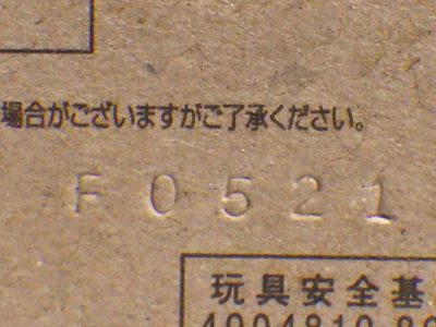 2019年8月27日現在の最新製造年月日については、神奈川のコレクターK氏の情報によれば、箱では「F1519」を確認。ブリスターパックでは最近まで