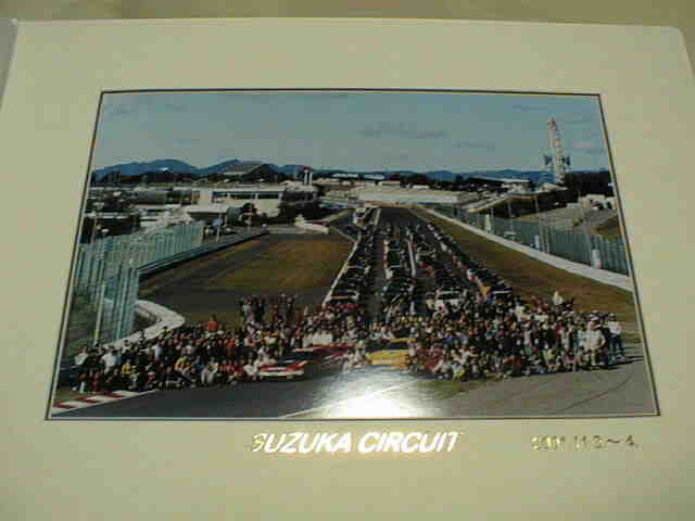 | 会場:鈴鹿/日程11月2〜3日。アルミパネルにピットで個別撮影した参加者個人の写真と集合写真を収める。 | 会場:鈴鹿/日程11月1〜2日。アルミパネルに集合写真のみ。写真は2枚もらえたのでパネルは同伴者にあげた。画像の写真立ては市販のもの。 | ||