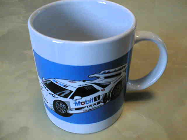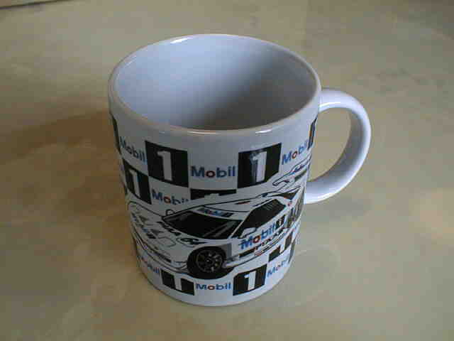 | ヤフオクにて購入。片面にMobil1のロゴ、反対側に98年仕様のマシンのイラストをプリント。 | 2006年1月フランスのコレクターより10ユーロ(約1380円)で購入。固定式ヘッドライトの後期型をプリントしたマグカップはこれ が初。高さ10.5cm、直径7.5cm。イギリス製。 | ||
