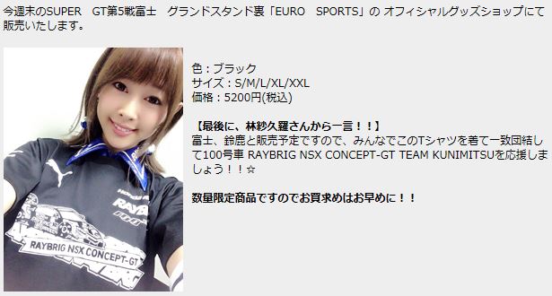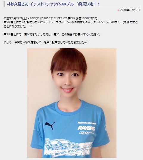 ックレースクイーンの林紗久羅さんが描いたイラストがデザインされている。8月24日よりAUTOSPORTwebSHOPで販売が開始されたが即完売。