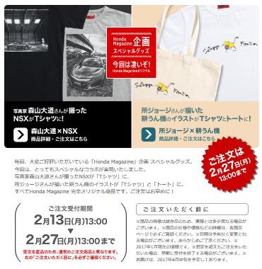 上記のTシャツと同時に2024年4月17日に発売されたホンダとのコラボ商品。 |