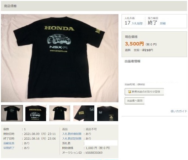 2021年6月20日に栃木の古着屋がヤフオクに出品。