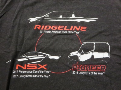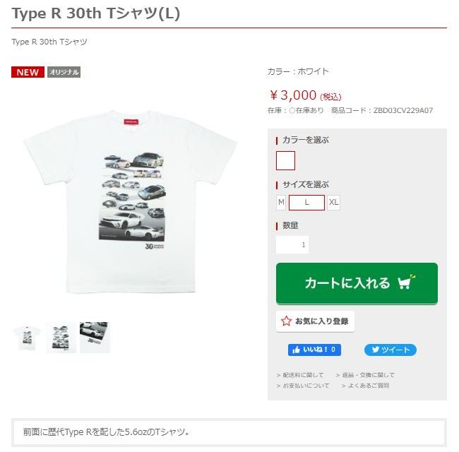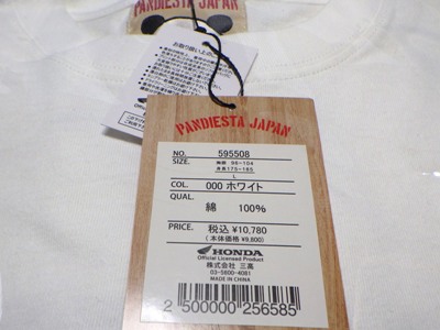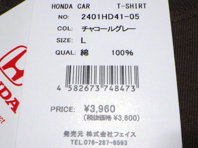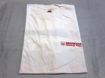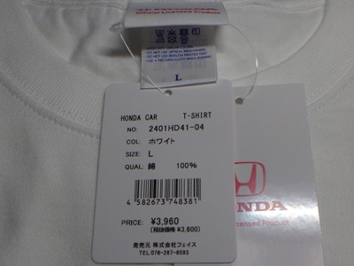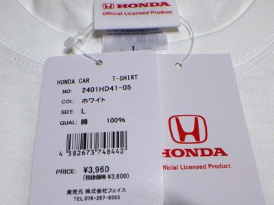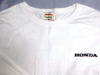 上記の商品と同じフェイス製のホンダ承認商品。 こちらも2カラー各3サイズのうちからLのみを選択したが、ショップのオススメサイズはXLとのこと。 商品説明には「100%コットン。大人がすっきりと着こなせるしっかりとした5.6オンスのヘビーウエイト生地を採用。しっかりしているので繰り返し着てもよれることが少なくスタイリングが決まる一枚です。」と高品質をアピールしているが、購入者のレビューコメントを見ると「値段不相応な商品」「生地が薄く安っぽくプリントのイラストも像がボヤけていてキレがない感じがします」と厳しめ。個人的にはそこまで低品質だとは思わないが。