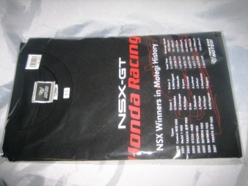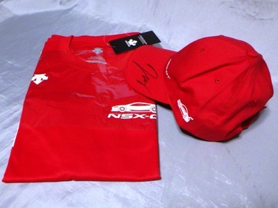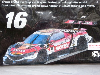 | 2005年4月ヤフオクにて購入。出品者はホンダプリモ野崎店の「M-TEC GTパドックツアーもてぎ」という企画に参加し、そこのゲストハウスで頂いたものとのこと。ナイキのマークにマシンのデザインをうまくかぶせてある。 | |||