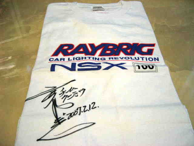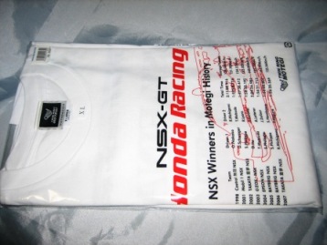 | ヤフオクにて購入。ホンダチューンで有名なショップの品。インテ、シビックも描かれる。 | 2006年10月NSX fiesta06にて限定10個を販売。M、L、LLの3サイズあり。手首のバンド部にNSX fiestaのロゴと車のシルエットが型押しされている。 | ||