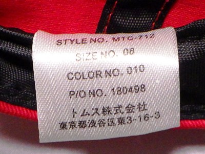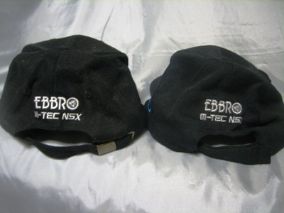 画像左のタイプ : @フロントの刺繍は大きく盛り上がっており、ロゴの配色順は左から白・赤・金で正しい。Aサイドの刺繍の「♯」マークが小さい。Bリアのロゴ表記が「M-TEC」で正しい。Cバックルでサイズを調節できる。Dフロント上部に通気穴が2つ空いている。E裏地はフロントのみ白。表地は全て硬めの素材が使われている。おそらくこちらが正規品と思われる。最終戦で関係者に配付された記念セットのキャップはこちらだった。 画像右のタイプ : @フロントの刺繍の盛り上がりは小さく、ロゴの配色順は左から赤・金・白で誤りである。Aサイドの刺繍の「♯」マークが大きい。Bリアのロゴ表記が「m-TEC」で誤りである。Cマジックテープでサイズを調節できる。Dフロント上部に通気穴はない。E裏地は全て白。表地はフロント以外の部分に柔らかい素材が使われている。おそらくこちらは試作品と思われるが、特に気にせず、正規品と共に関係者に配付されたらしい。ちなみにどちらにも、つばの部分に2005年ドライバーの、黒澤治樹選手と細川慎弥選手の直筆サインが入っている。 |