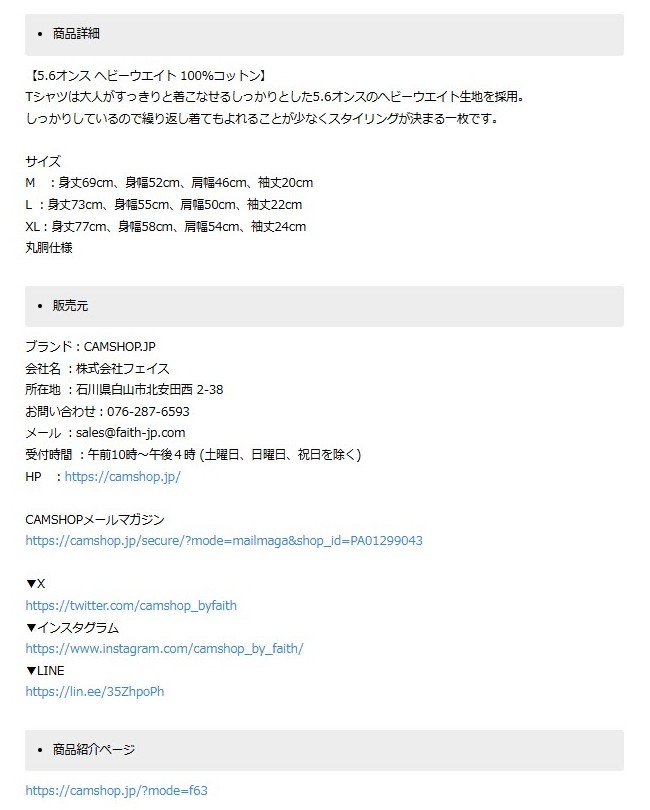 定価はTシャツの3,960円に対して6,600円とお高めだが、メルカリでMサイズのベージュの新品が送料込2,900円で出品されていたのを見つけて購入。 素材はコットン100%でサイズ展開はTシャツと同じくM/L/ XLの3サイズ。 フェイスは石川県のメーカーだ、ベトナム製のシャツをベースに和歌山県の工場で仕上げ作業をおこなっており、CAMSHOPのオフィシャルサイトなどから購入可能。 Tシャツも含め在庫のあるショップは、2025年12月現在、まだあるようなので、チャコールも購入するかも。