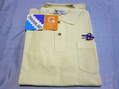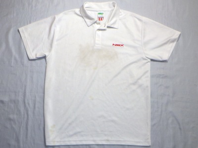 「メカニックスタッフポロシャツ」という商品名だったが、本当にそうなのか出品者がそのように名付けただけなのかは不明。 シミのある古着だったが、それ以外は大きな痛みや使用感もないのでとりあえず洗濯機に直行しキレイになった。 送料を含めて800円弱だったので別に不満はない。