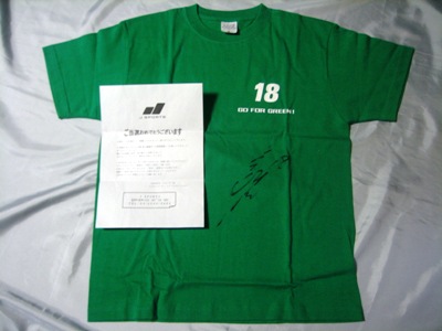 2019年に数回ヤフオクに登場し、高かったのでスルーしたり、競り負けたりして、結局入手できなかったスーパーGT2019第3戦鈴鹿(5月26日決勝)の会場でホンダファンシート特典として配付されたキャップ・Tシャツ・ピンズの3点セット。 2020年8月19日にピンズなしで出品されたものを落札。 キャップのつばの部分に実筆サインが入っていたので調べたところ、モデューロ・ナカジマレーシングのドライバーだった牧野任祐(まきのただすけ)選手のものと判明。 |