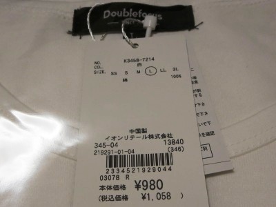サイズはS、M、L、LLの4種でLを購入。素材は綿100%。日本製。