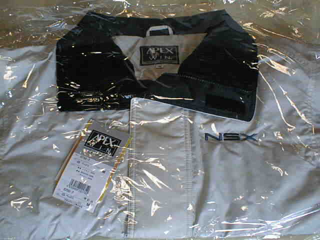 | NSX fiesta 2000で参加者に配付された記念品。APEX WIN製。いつも通りMとLの2着を受け取ったが、2018年に間違ってヤフオクで再購入。以下の詳細画像はその時のもの。 | ||