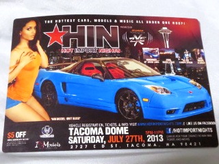 | 2016年5月18日オークション初登場。出品者はGWにLAで購入したとのこと。2013年に行われたイベントの宣伝用の物のようだ。「マグネットなっているのでSHOWの時、車に貼るのに便利」というオークションの説明文が面白かった。142×203mm。 | |||