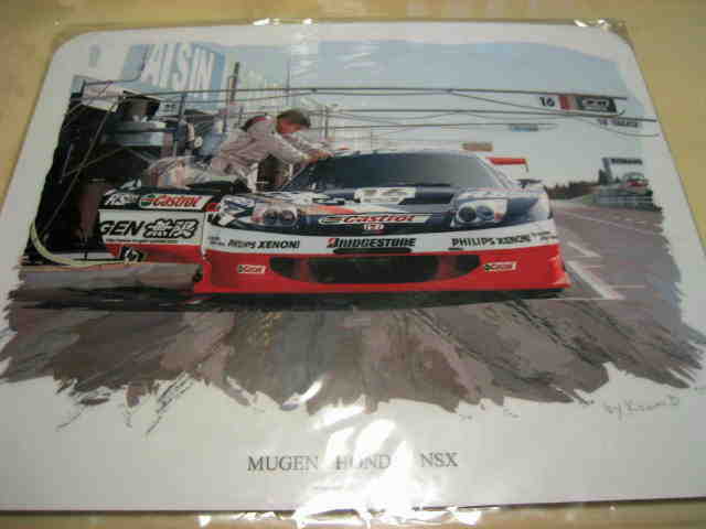 | 2008年6月オークション にて購入。GT300に参戦していたエブロM-TEC NSXの画像が使用されている。180×220mm。 | |||