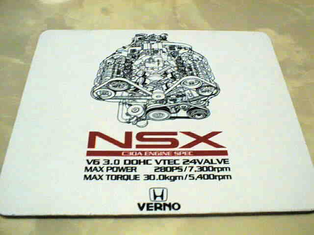 | 知人より購入。19cm×23cm。マグカップと同じC30Aエンジンがデザインされている。 | ヤフオクにて購入。18×22cm。2001年仕様のTAKATA童夢NSXをデザイン。 | ||