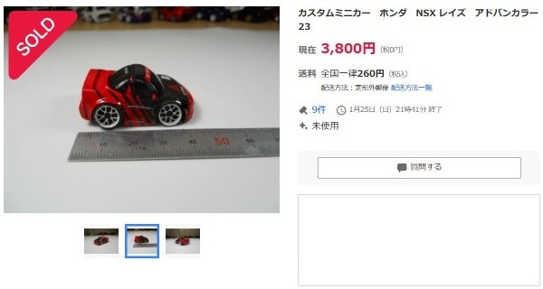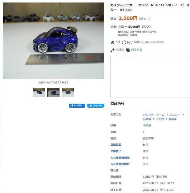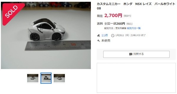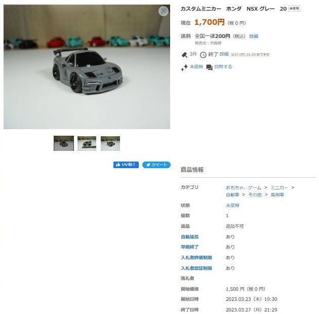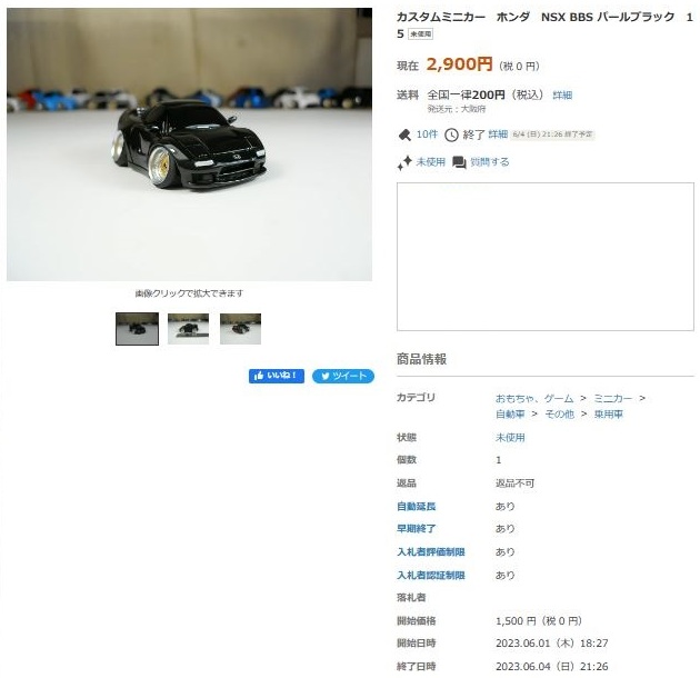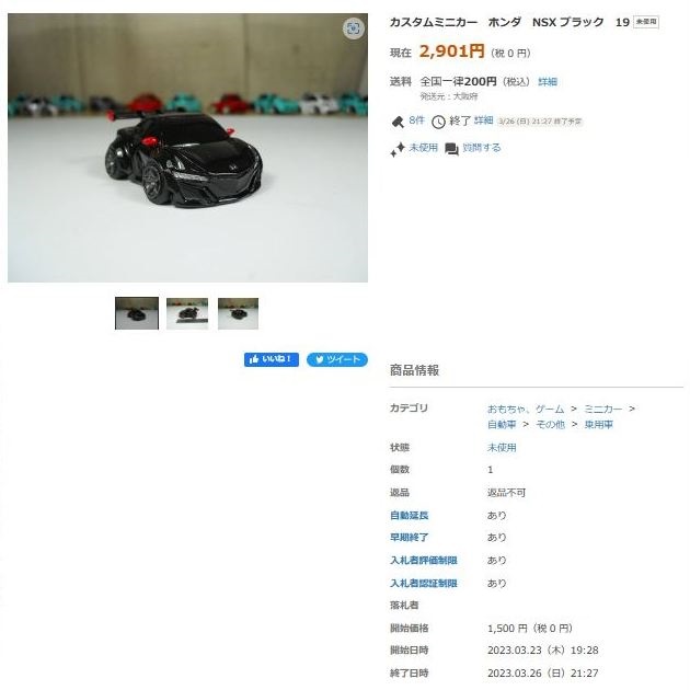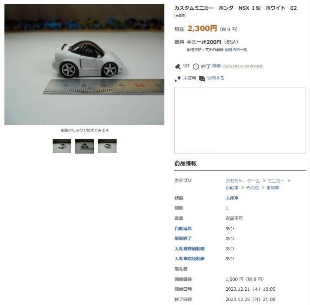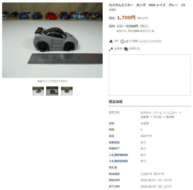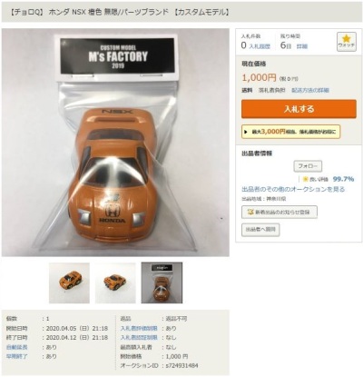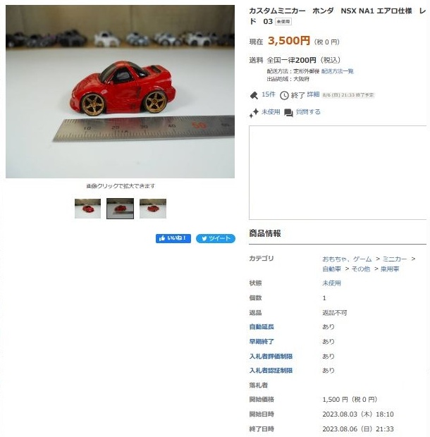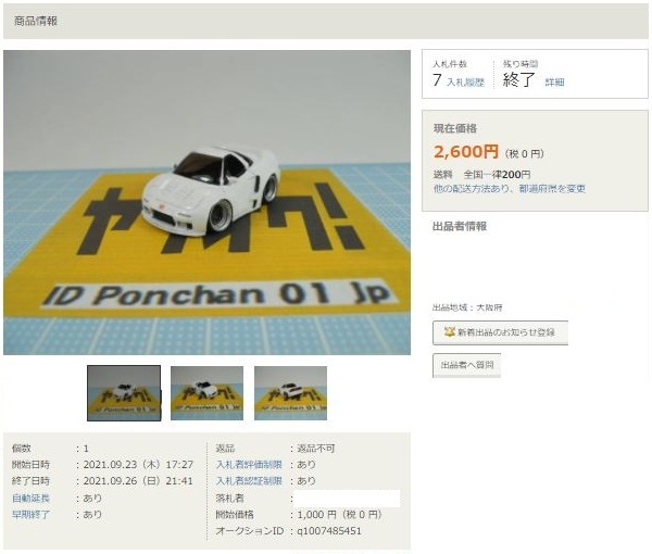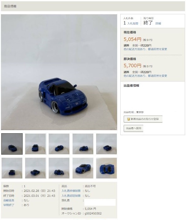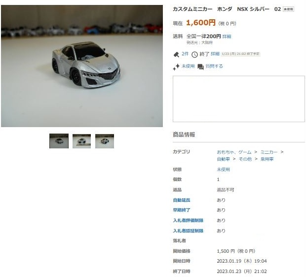その中にNSXは6種あり、すべて落札されたのですが、そのうち4種は開始価格の1,500円で終了し