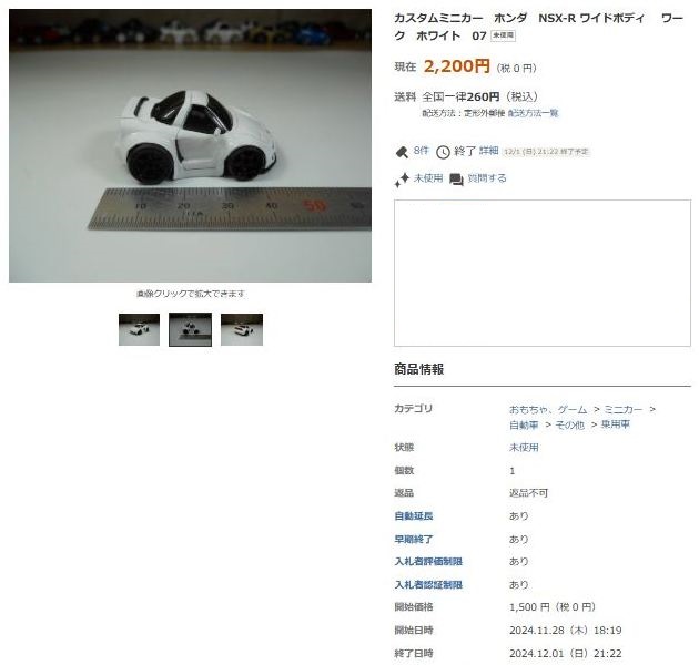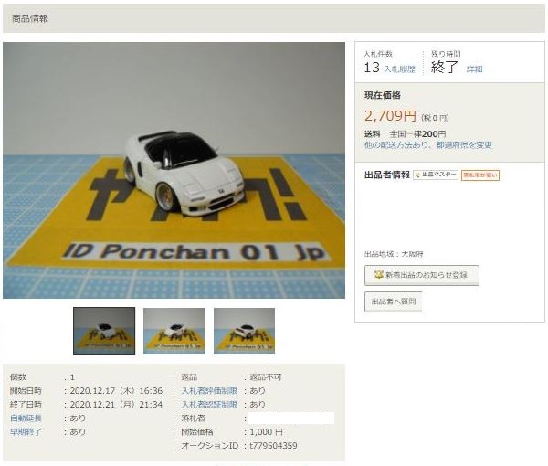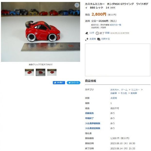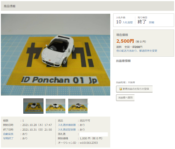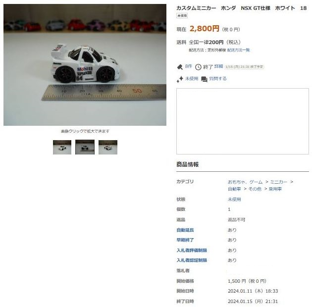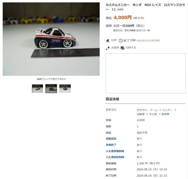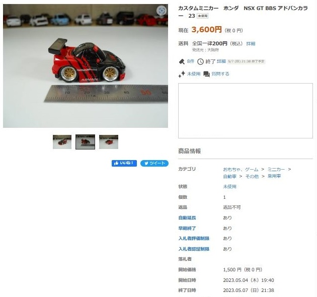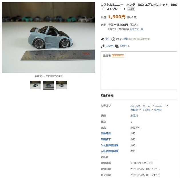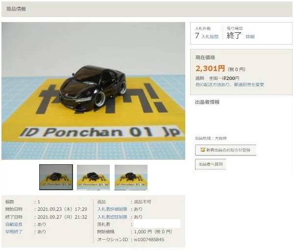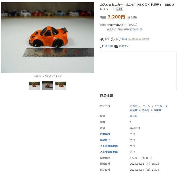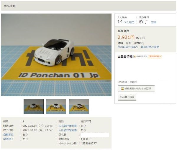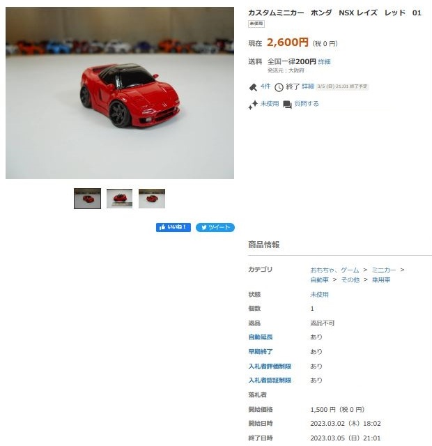その中にNSXは6種あり、すべて落札されたのですが、そのうち4種は開始価格の1,500円で終了し
