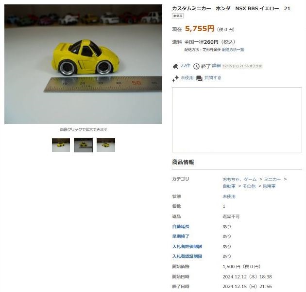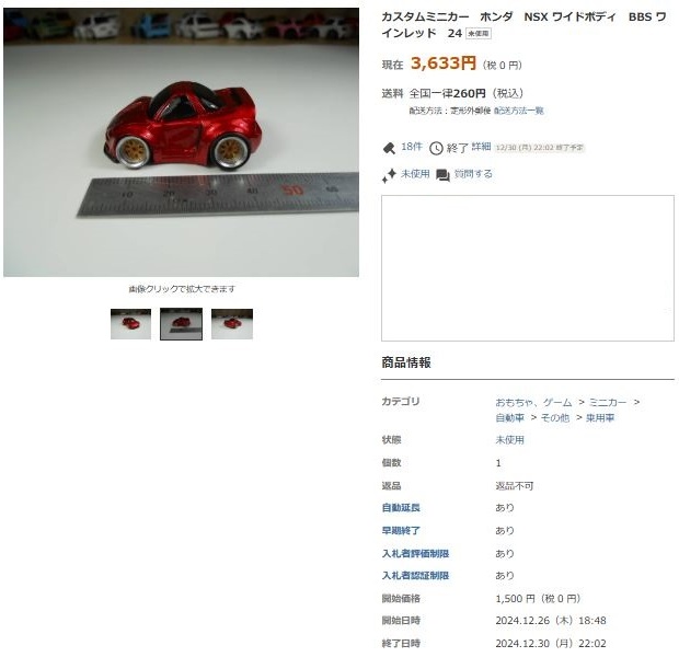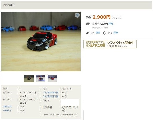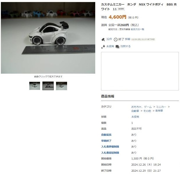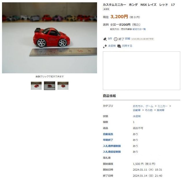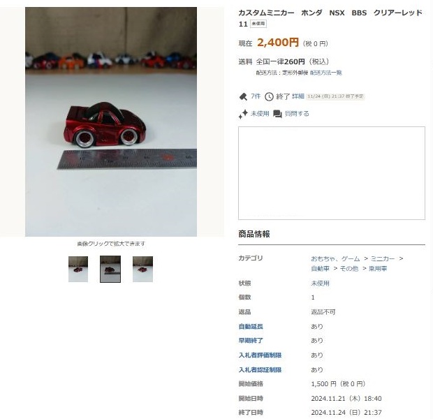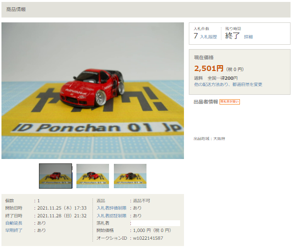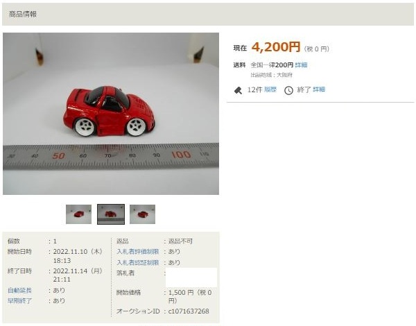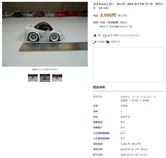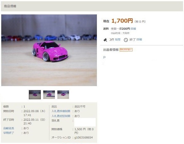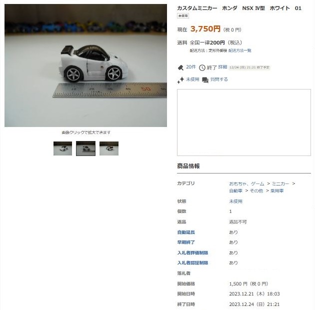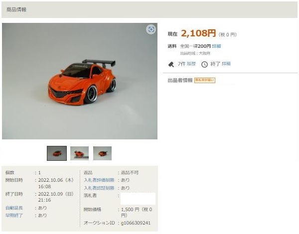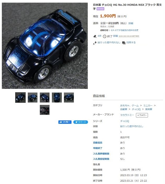 その中にNSXは6種あり、すべて落札されたのですが、そのうち4種は開始価格の1,500円で終了し