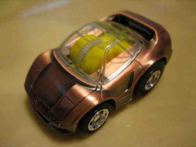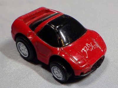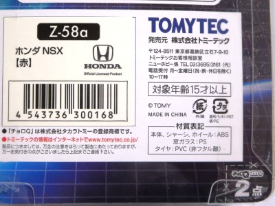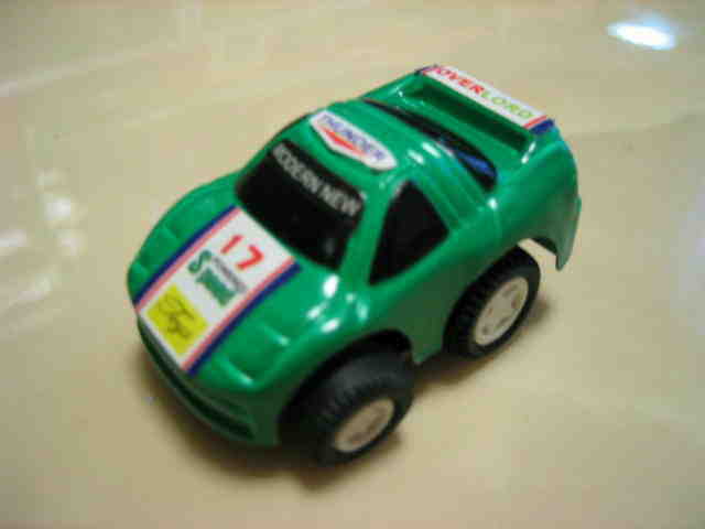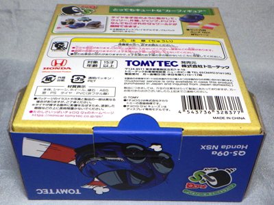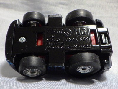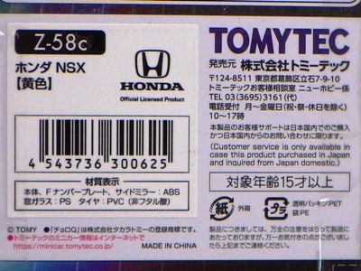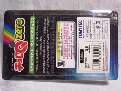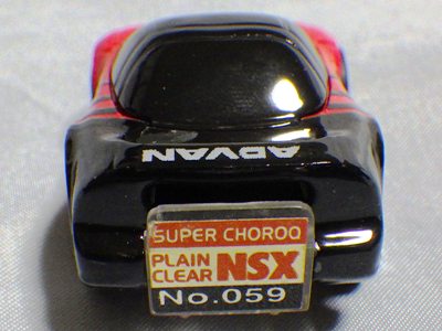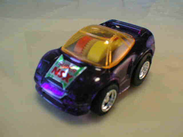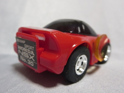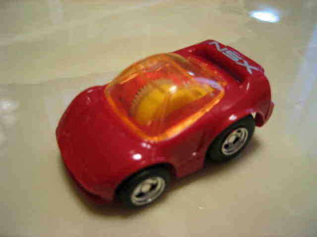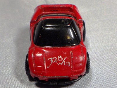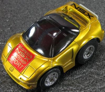 | 2004年5月ヤフオクにて購入。チョロQのコピー品というには少々小さく全長35mm。 それ以前にNSXと呼ぶのも厳しい形状。裏板に「MADE IN CHINA」の刻印。 |