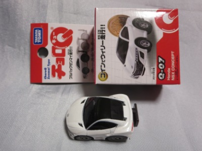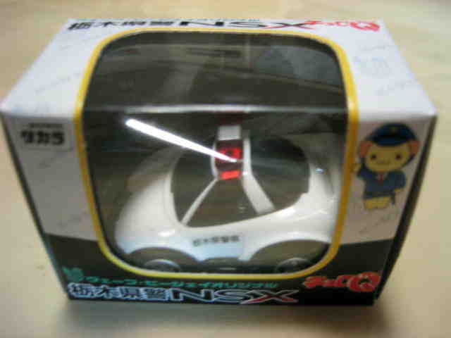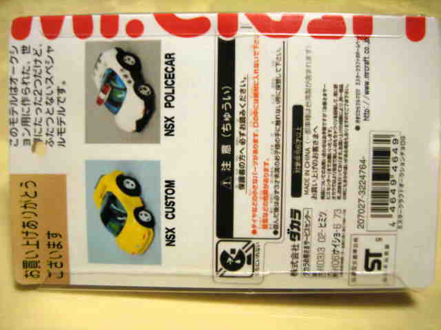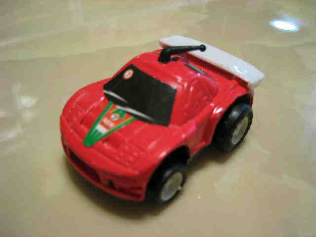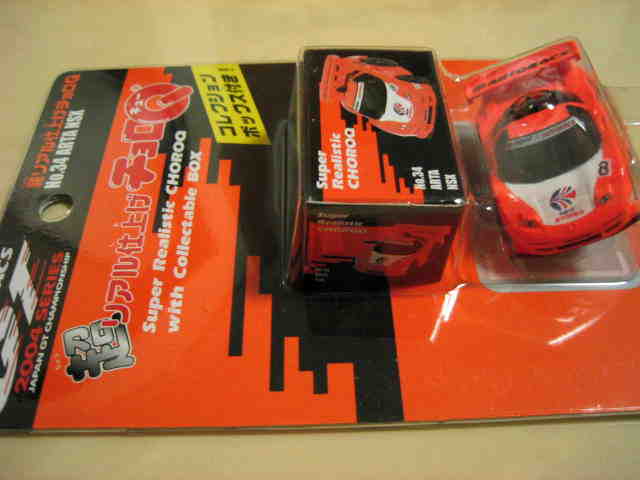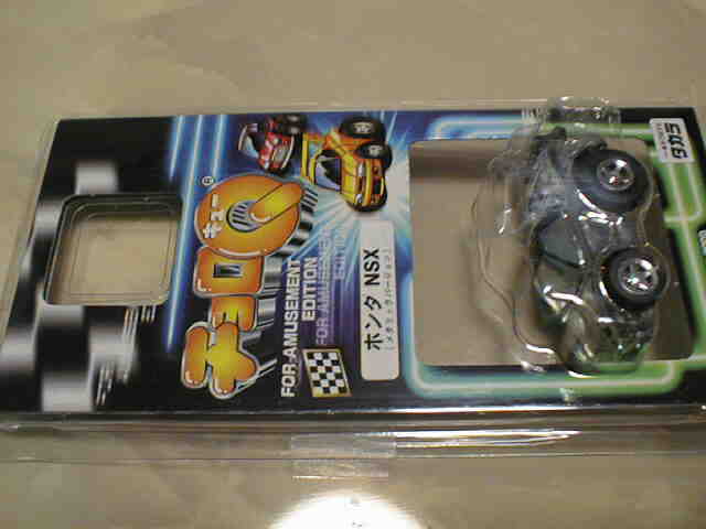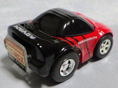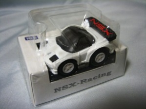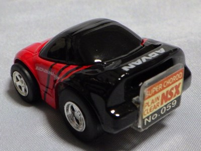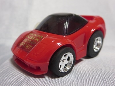 | 2004年9月ヤフオクにて購入。全8種あるアミューズメント景品。サイズも質感もまさにチョロQで、NSXとはどこにも書いてないがどこからみてもNSX。 | |||