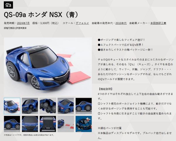 | 久しぶりの新作のご紹介。2020年3月12日に、トミーテックからチョロQZEROのNSXの新作が発表されました。2011年にこの大人向け高額チョロQシリーズがスタートしたときは、超リアルチョロQでの失敗を忘れてしまったのかと心配したのですが(実はそこそこ売れていたのか?ちなみに同シリーズのNSX初登場はつい最近の2019年3月)こうやってシリーズが続いているところをみると、それなりに売れているのでしょうか。350円で売られていた時代を知っている私としては、税抜2,200円という価格で購入する人がいることが信じられないのですが(という私もすで