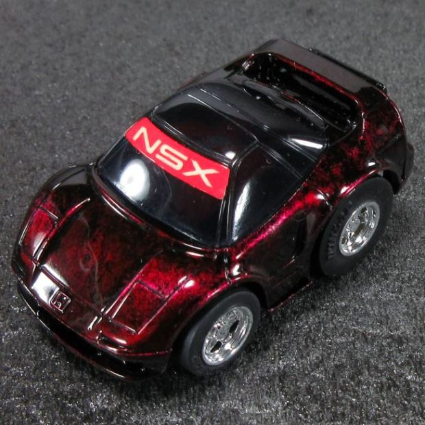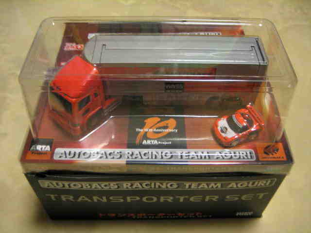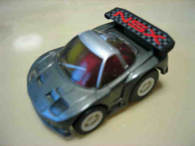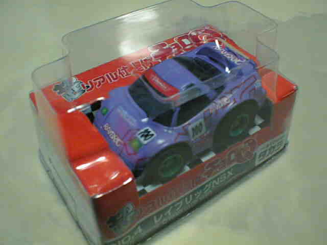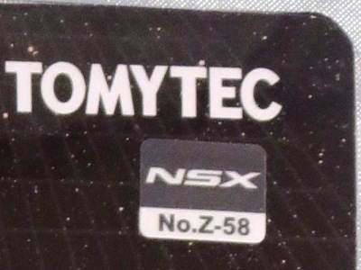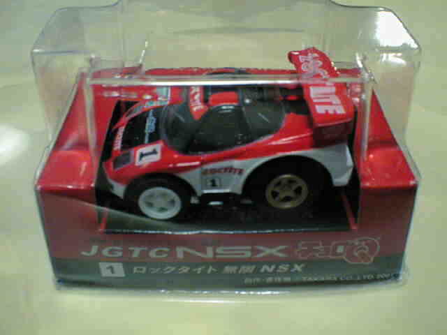 | 2001年12月発売。10台入でNSXはMobil1が1台のみ。グリッドシートとウエイトハンデシール付き。 | 2001年12月発売の限定版 クリアボディ。福袋形式の8車種の中の1台。 | ||