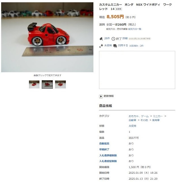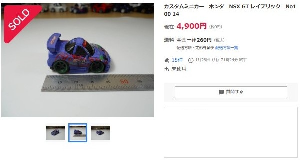 | ▲2026年1月22日出品のNSX-GTレイブリックNo.100 14 | ▲2026年1月26日に4,900円で落札終了 |