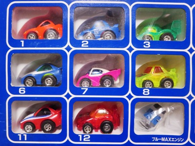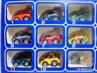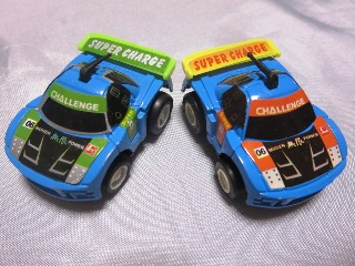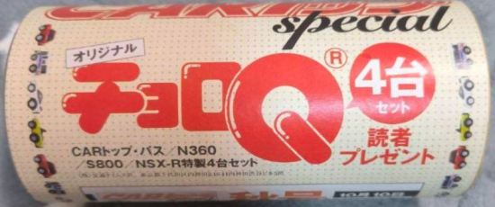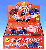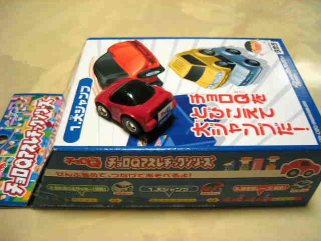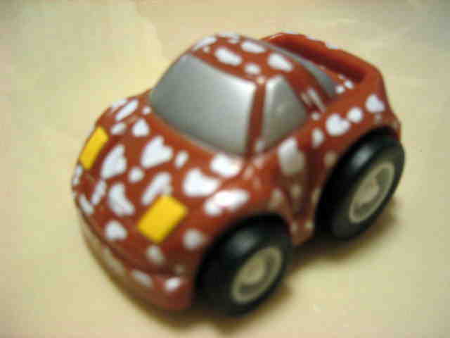 | 2002年5月中旬にコンビニ・スーパーに登場した食玩 (定価180円)。チョロQのコピー品と菓子のセット。全長40mm。 | |||