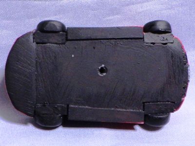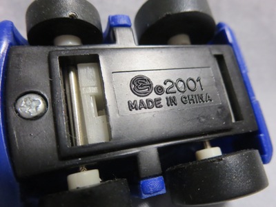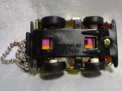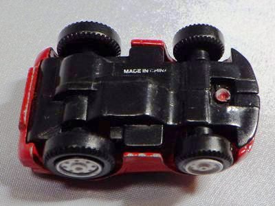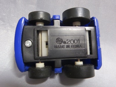 | チョロQのコピー品。裏板に「MADE IN CHINA」の刻印。ウインドウはボディと一体成形。 | チョロQのコピー品。裏板に謎のロゴと「2001MADE IN CHINA」の刻印。 | ||