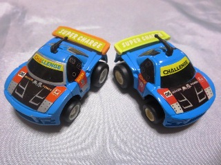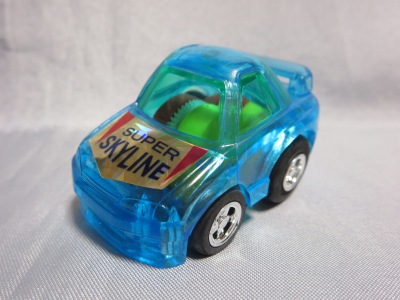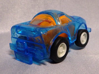 2020年8月27日にヤフオクに初登場したクリアブルーとゴールドの2種を入手。 出品者の岐阜の方は、私が2002年にスーパーで入手したドリームSDの「ち〜び〜カー」も同時に出品されていたのだが、この2種も同じ金型から作られた商品のようである。 私のコレクションの中では、ターゲットコーポレーションの「パーティパーツ」や、河合商会の「ダイキャストカープルプルくん」が同じ系列の商品になるが、キャノピー部がクリアかブラックか、ホイールが白か黒のオフロードタイプか、ボンネットにシールがあるかないかなど、様々な差異が見られる。 |