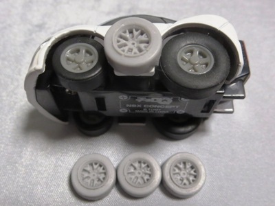 されている。 新しいといっても、金型が劣化したのをベースに調整したのか、リムが浅くなりディテールが甘くなってい る。新ホイールへの変更は他の通常品も同様。 |