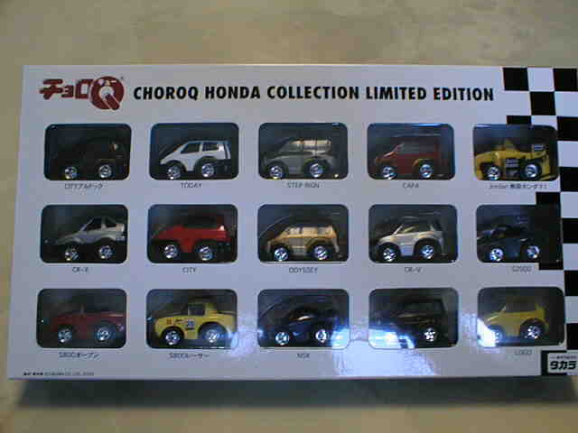 | 2000年11月発売。茂木で購入。販促品としても用いられた。3,000台限定という割に流通量多し。中国製。 | ホンダ車15台セット。2000年12月登場。NSXはHDC限定メタ青のルーフを塗装したもの。 | ||