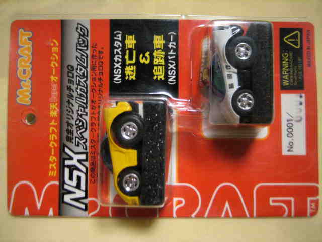| 99年12月発売。銀黒のツートンのNSXとS2000、S-MXのセット。中国製。 発売元は光の国。 | 2000年3月発売。スープラ、GTR、RX-7とのセットでNSXはパトライト付きの黄。中国製。 | ||