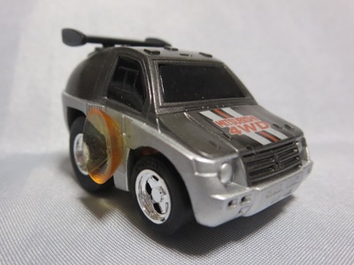 | 2006年2月入手。2005年11月頃から100円ショップのダイソーに登場した5台セットの中の1台。作りはかなりアバウトで、走らせると直進性もかなりあやしい。裏版に刻印等はなし。 | |||