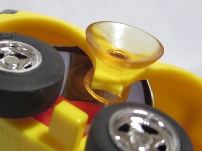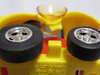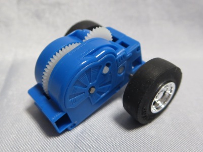 | リアナンバー部のステッカーNo.59。タイヤ無刻印。別に所有しているブリスターパック入りも 別カウントしている。中国製。 | プルバックエンジンの配色が左右逆、後輪の車軸をカバーするギアが、通常の白色ではなく水色になっている(画像左・右は後期版@)。 | ||