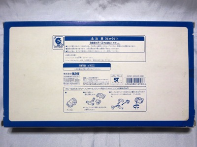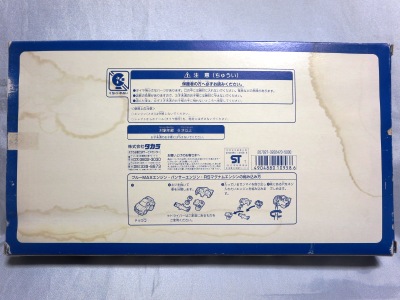 | 2006年2月にコレクターの方に譲っていただいた。5年以上前に購入した物とのことで詳細は不明。ボディは明らかにタカラ製の商品から型を起こしてコピーした物でディティールはそっくり。裏板に「MADE IN CHINA」の刻印。 | |||
