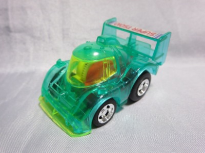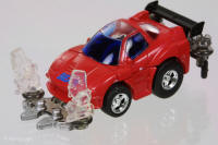 | 2002年2月に車体のみ購入し詳細不明だったが03年10月ヤフオクで新品を購入 (定価300円)。ディアブロとフォーミュラマシンらしきものがセットされ発射台がほぼ同じ「ホットショット」(380円/SDドリーム)という製品もある。 | |||