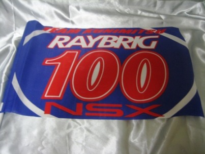 | ヤフオクにて購入。ポールを除くフラッグのサイズは20.5×31cm。製作年度は不明。99年か? | NSX fiesta 2002のパレード走行用に配付。フラッグのサイズは42×58cm。 | ||