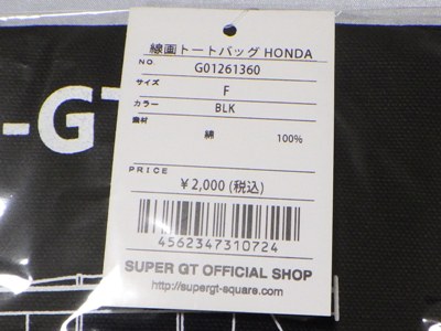 | GT500マシン線画トートバッグHONDA2023/スーパーGTオフィシャルショップ/\2,000 | ||