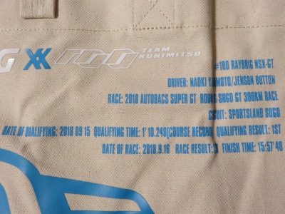 2018年スーパーGT第6戦SUGOでレイブリック×チーム国光のレイブリックNSX-GT優勝を記念して多数製作されたグッズの1つ。オートスポーツウェブショップで購入。「NEW ERA」は、メジャーリーグで有名なアメリカのキャップメーカー。 30個限定とあったが、ウェブショップのみの販売数と思われる。スーパーGT第6戦会場のオートポリス、スーパーフォーミュラ最終戦会場の鈴鹿、スーパーGT最終戦会場のMOTEGI、ホンダレーシングサンクスデイ2018会場のMOTEGIでも販売された。 |