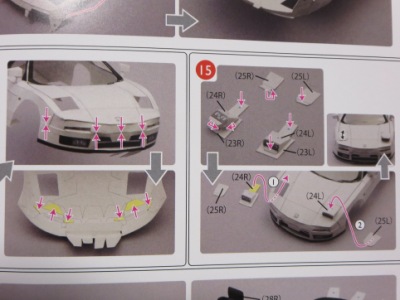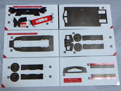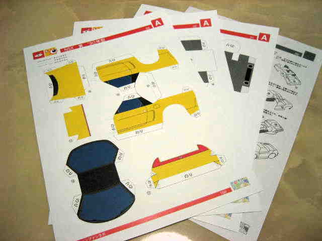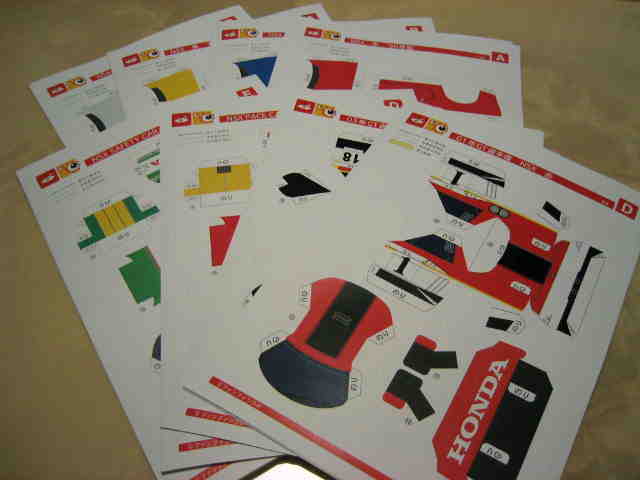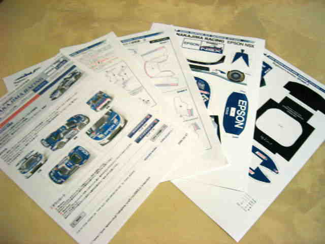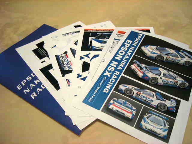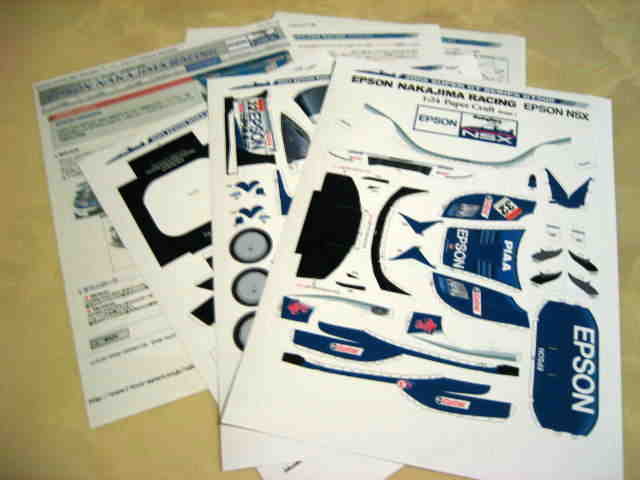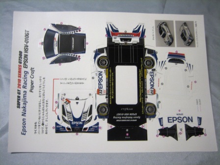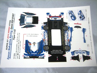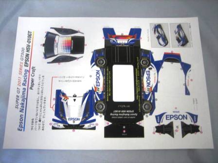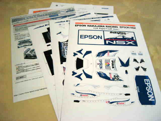 | 2005年5月「エプソンナカジマレーシング」のHPよりダウンロード&プリントアウト。組立説明書2ページ、パーツ3ページ。画像の一番左はダウンロードページをプリントアウトしたもの。 | 2005年5月「エプソンナカジマレーシング」のHPよりダウンロード&プリントアウト。組立説明書とパーツが2ページずつ。画像の一番左はダウンロードページをプリントアウトしたもの。 | ||