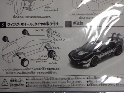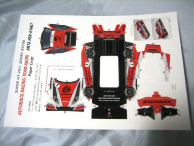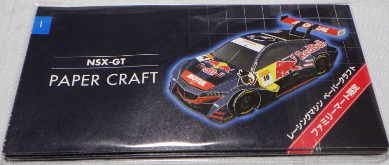 2019年8月にコレクター仲間から頂いたもの。2019年8月開催の「SUZUKA10HOURS」でのピットウォークにて配布されたもの。 2019年4月開催のスーパーGT2019開幕戦から配布されていた。通常のペーパークラフトと異なり、走行可能なのがポイント。タイヤのみ紙ではなくスポンジ素材になっている。サイズはA4よりわずかに大きい。 |