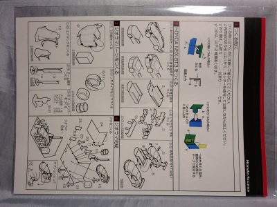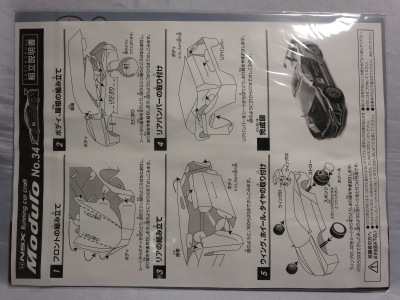 で送料は800円。 発売日に注文し18日に到着。A4サイズの三つ折り組立説明書と、同じくA4の展開図、A7の透明フィルムで構成されている 。製作難易度は低いようだが、今のところ作る予定はなし。 フロントの立体感はなかなかだが、サイドは少々フラットすぎる印象。 |