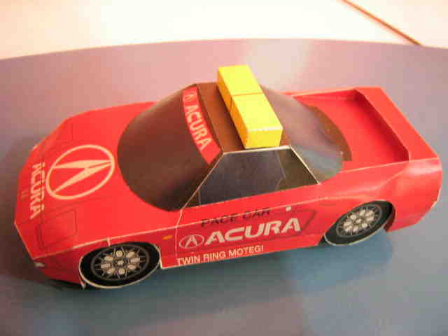 | 2011年12月コレクター仲間より譲っていただく。エプソン が毎年製作しているのかと思いきや、全く同様なものがARTAにも存在した。他のチームのマシンも存在するのかも。デザインは篠崎均氏。 | 2012年10月ヤフオクにて入手。サーキットでステッカーと共に配布されていたもの。A4サイズの厚紙に印刷されており、切れ目も入っていて、のりを使わずに簡単に組み立てられるタイプ。 | ||