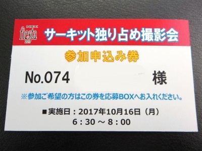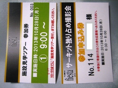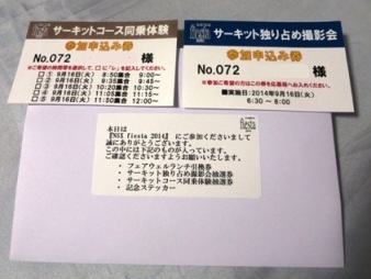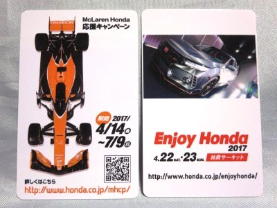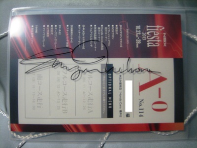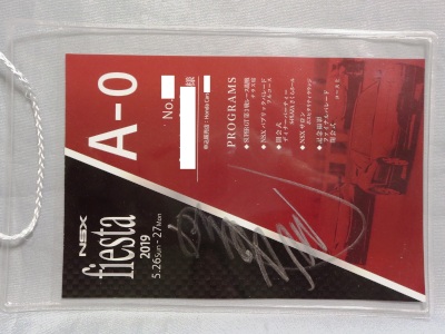 | 2016年5月14日、ツインリンクもてぎで有志によって開催されたイベントで使用されたもの。事前に参加者に送付された入場パスを、受付でこの参加パスと交換した。裏面にはイベントスケジュールが印刷されている。サイズは14.8×9.5cm。 | 2016年5月14日、ツインリンクもてぎで有志によって開催されたイベントで使用されたもの。事前に参加者に送付された入場パスを、受付でこの参加パスと交換した。裏面にはイベントスケジュールが印刷されている。サイズは14.8×9.5cm。 | ||
