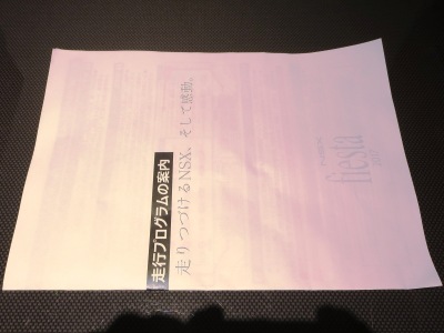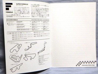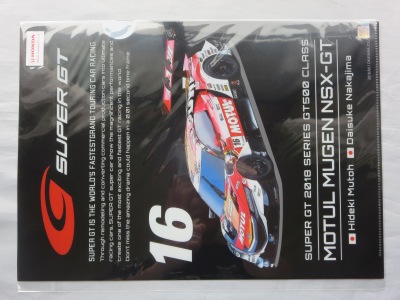 2019年5月23日にヤフオク初登場。 スーパーGT2019第2戦FUJIの会場で配布されていたもの。 A5サイズで、中の用紙は30枚綴じのため全60ページ。 すべてのページにKEIHIN NSX-GTのイラストがプリントされており、表紙と裏表紙の裏のイラストの下には、それぞれ「START」「GOAL」の文字が入る。 |