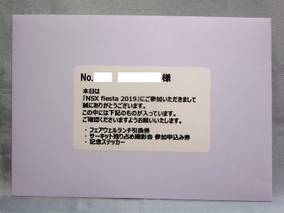 NSX25周年記念イベント 「NSX DAYS2016 in MOTEGI」用封筒 |