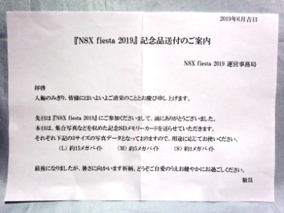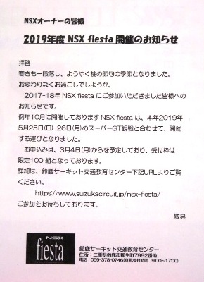 NSX25周年記念イベント 「NSX DAYS2016 in MOTEGI」案内状 |