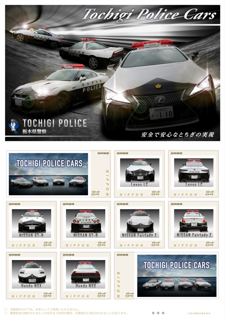 | オリジナルフレーム切手「Tochigi Police Cars」/日本郵便 | |